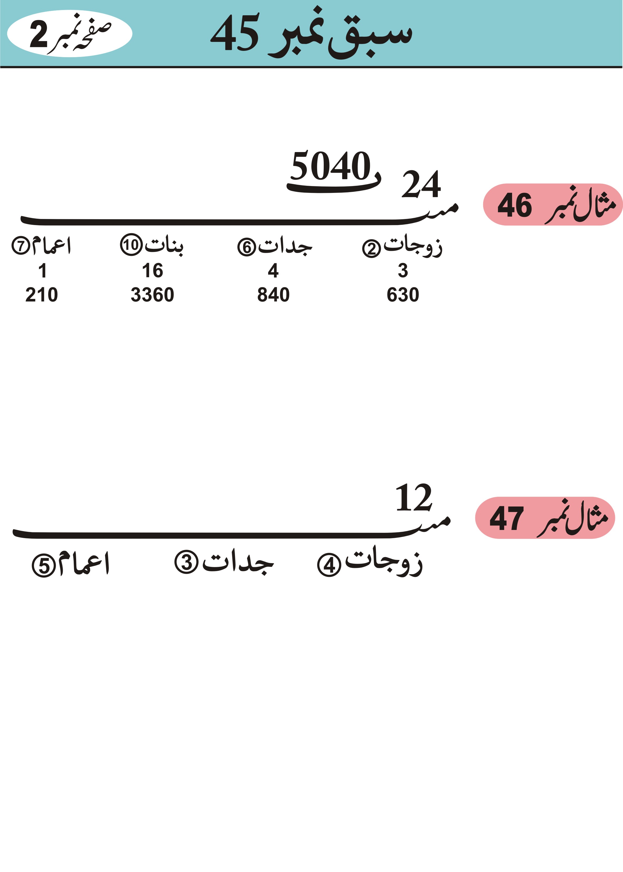 سراجي کی حل شدہ مثالیں