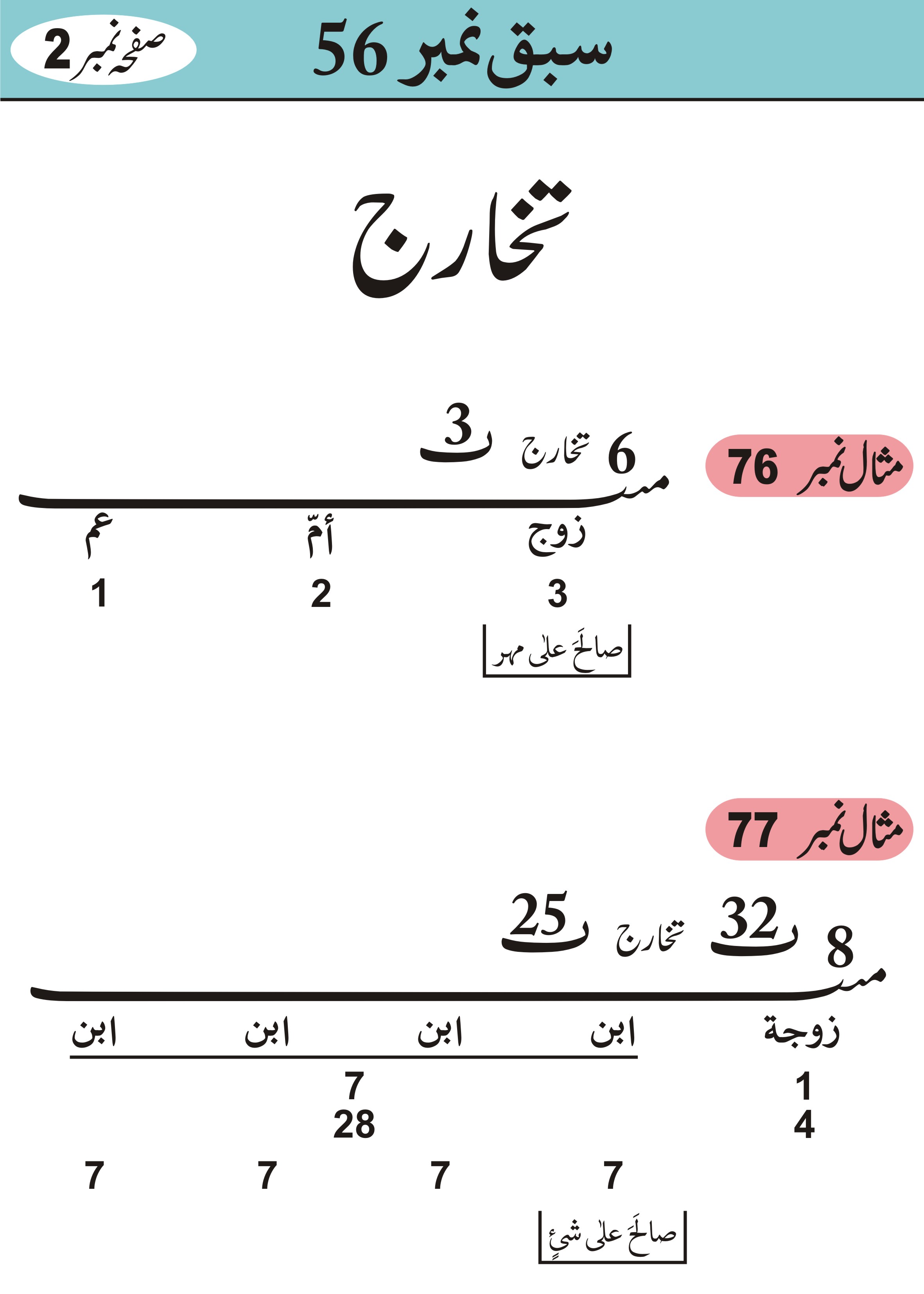 سراجي کی حل شدہ مثالیں